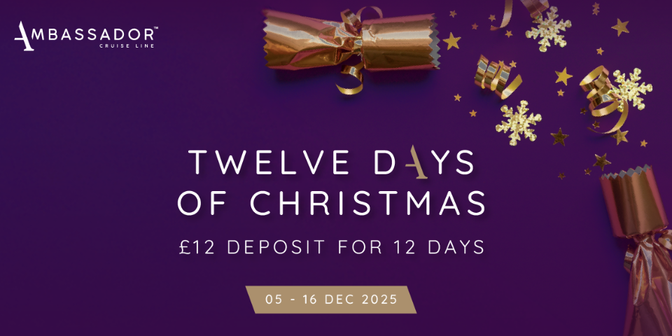 With Ambassador's incredible £12pp deposit for 12 days offer, you can book early, save more and look forward to a stress-free holiday at sea.
