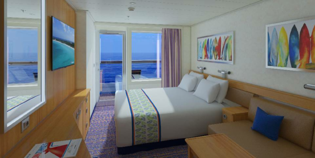 Suites: Carnival Sunrise offers four suite categories. The rooms are the largest onboard but are neither over-the-top luxurious or perks-laden as you might find on other ships. All come with priority check-in, but no other perks.